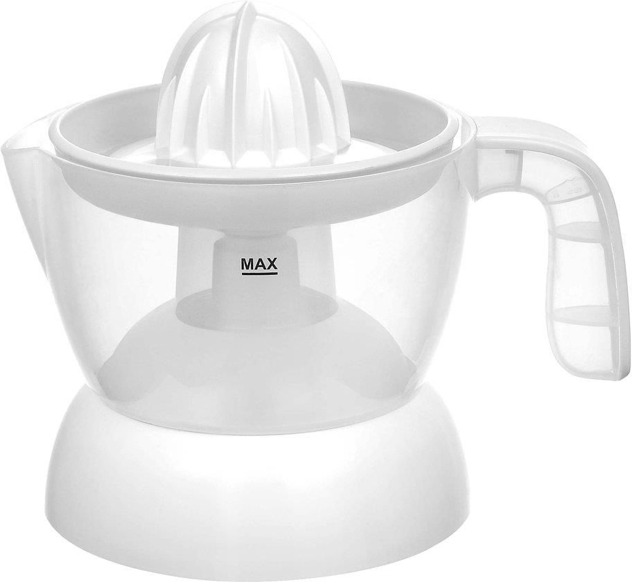 Wyciskarka do cytrusów owoców cytryny Złóż, wyciśnij i wypij – nic szybszego ani prostszego! Niedroga wyciskarka do cytrusów marki Menuett to niezwykle proste w obsłudze urządzenie kuchenne wyposażone w jeden stożek wyciskający i funkcję rotacji jednostronnej (stożek obraca się w jedną stronę). Na wyciskarkę składają się: stożek wyciskający, filtr, zbiornik, przezroczysta pokrywka ochronna oraz podstawa z silnikiem. Wszystkie części z wyjątkiem podstawy nadają się do mycia w zmywarce. Na spodzie podstawy znajduje się schowek na kabel. Specyfikacja techniczna Gwarancja (w miesiącach): 12 m. Moc: 30 W Pojemność: 500 ml Napięcie: 230 V Długość kabla: 80 cm