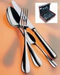 Roma - sztućce ze stali nierdzewnej 18/10 (Solid handle)Elegancki zestaw obiadowy 75 szt. dla 12 osób zawiera: 12 x nóż 12 x widelec 12 x łyżka 12 x łyżeczka do kawy 12 x widelczyk deserowy12 x nożyk deserowy1 x łyżka wazowa1 x łyżka serwująca1 x widelec serwującyluksusowa kaseta …