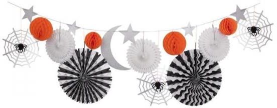 Jeśli szukasz girlandy na Halloween, która wprawi w zachwyt Twoją rodzinę i przyjaciół, to jest to! Jest pięknie zaprojektowana z kombinacją gwiazd, pajęczyn, pająków, wiatraczków, półksiężyca, kulek o strukturze plastra miodu i mnóstwa mieniącego się brokatu. Niesamowita dekoracja do wykorzystania …