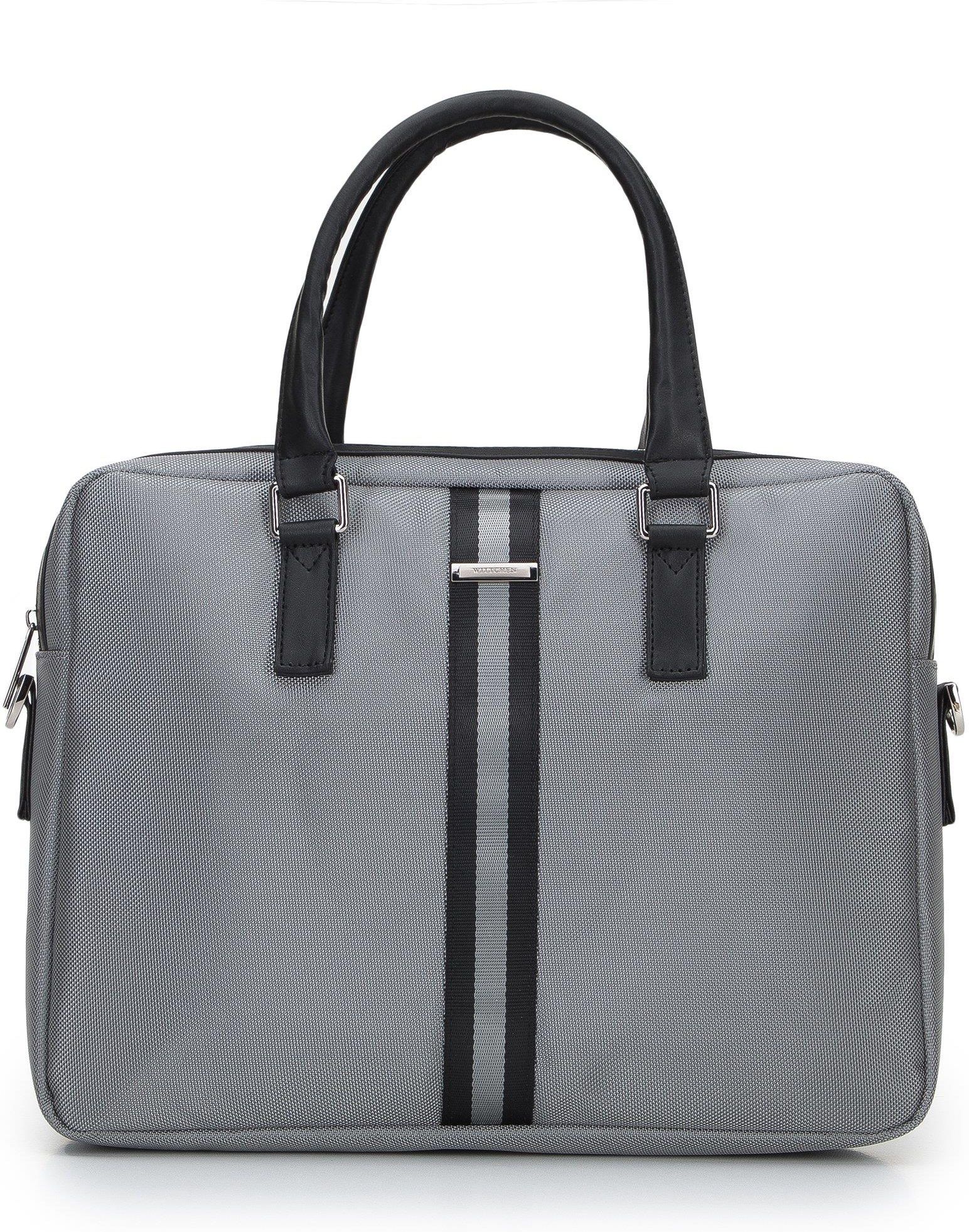 Męska torba na laptopa. Ta prosta, ale stylowa torba to świetny wybór dla każdego mężczyzny. Została wykonana z wysokiej jakości poliestru o lekkim połysku. Z przodu znajduje się tasiemka, która nadaje jej sportowego charakteru. Błyszczący suwak w kolorze srebrnym wykończony jest obszyciem ze skóry naturalnej. Wewnątrz zmieścisz dokumenty w formacie A4, portfel, telefon, kalendarz i kilka drobiazgów. W miękko wyściełanej kieszeni schowasz urządzenie elektroniczne o maksymalnych wymiarach: 24 cm x 33 cm. Męska torba na laptopa 15,6” z tasiemką to ponadczasowy dodatek zarówno do pracy, jak i po pracy.Nasza rada: możesz ją nosić w ręku lub na doczepianym pasku.Wewnątrz: pomieści format A4; miękko wyściełana kieszeń na urządzenie elektroniczne o maksymalnych wymiarach: 24 cm x 33 cm; ciemna podszewka w logo WITTCHEN; trzy kieszenie, w tym jedna na suwak. Dodatkowo: poliester; skóra naturalna; dopinany, regulowany pasek z tkaniny; kieszeń od strony ciała zamykana na suwak; zamykana na suwak.