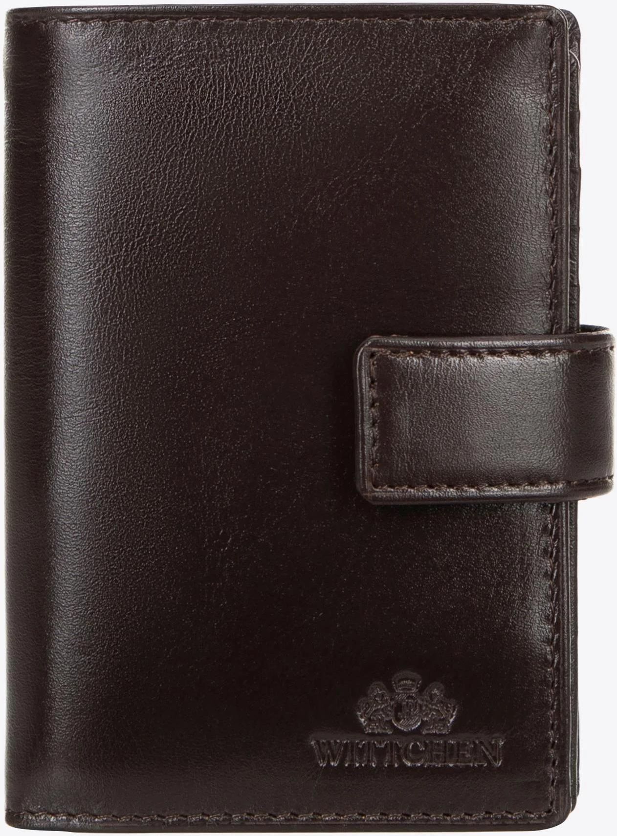 Męski portfel skórzany z zapięciem na napę średni brązowy Warszawa