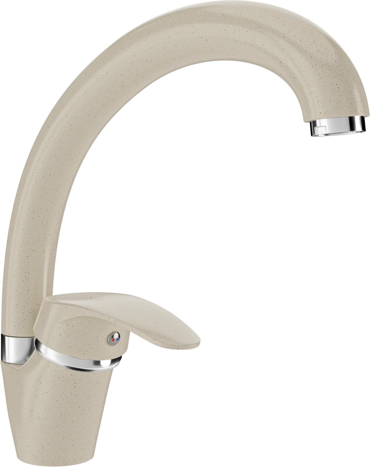 Mexen Rosa bateria kuchenna z obrotową wylewką, beżowy Producent: Mexen Seria: Rosa Numer katalogowy: 670800-69 Dane techniczne Materiał: Mosiądz Wykończenie: Beżowy Głowica: Ceramiczna Perlator: Tak Typ: Jednouchwytowa Wysokość: 235 mm Zasięg wylewki: 250 mm Bateria posiada obrotową wylewkę