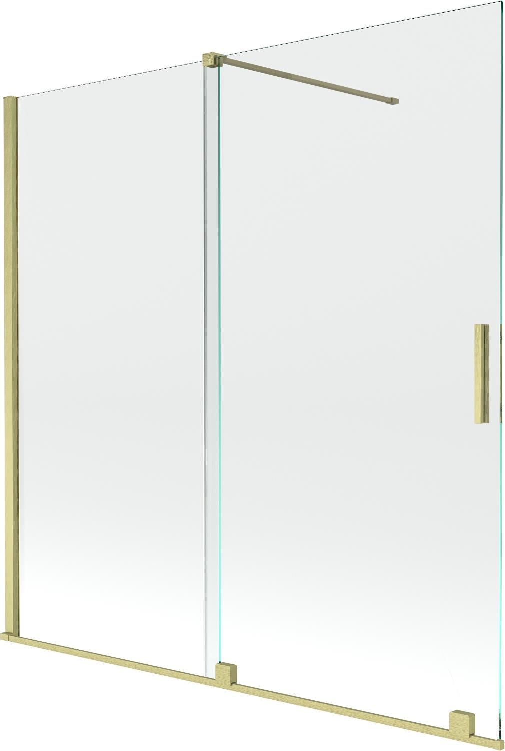Mexen Velar parawan nawannowy 2-skrzydłowy rozsuwany 160 x 150 cm, transparent, złoty szczotkowany Producent: Mexen Seria: Velar Kod produktu: 896-160-000-01-55 Dane techniczne Szerokość: 160 cm Wysokość: 150 cm Rodzaj 2-skrzydłowy Montaż: Uniwersalny Typ: Ruchomy/Rozsuwany Rodzaj szkła: Hartowane Kolor szkła: Transparentny Grubość szkła: 8 mm Wykończenie: Złoty szczotkowany Powłoka ułatwiająca czyszczenie Niwelacja nierówności ściany Komplet uszczelek odprowadzających wodę