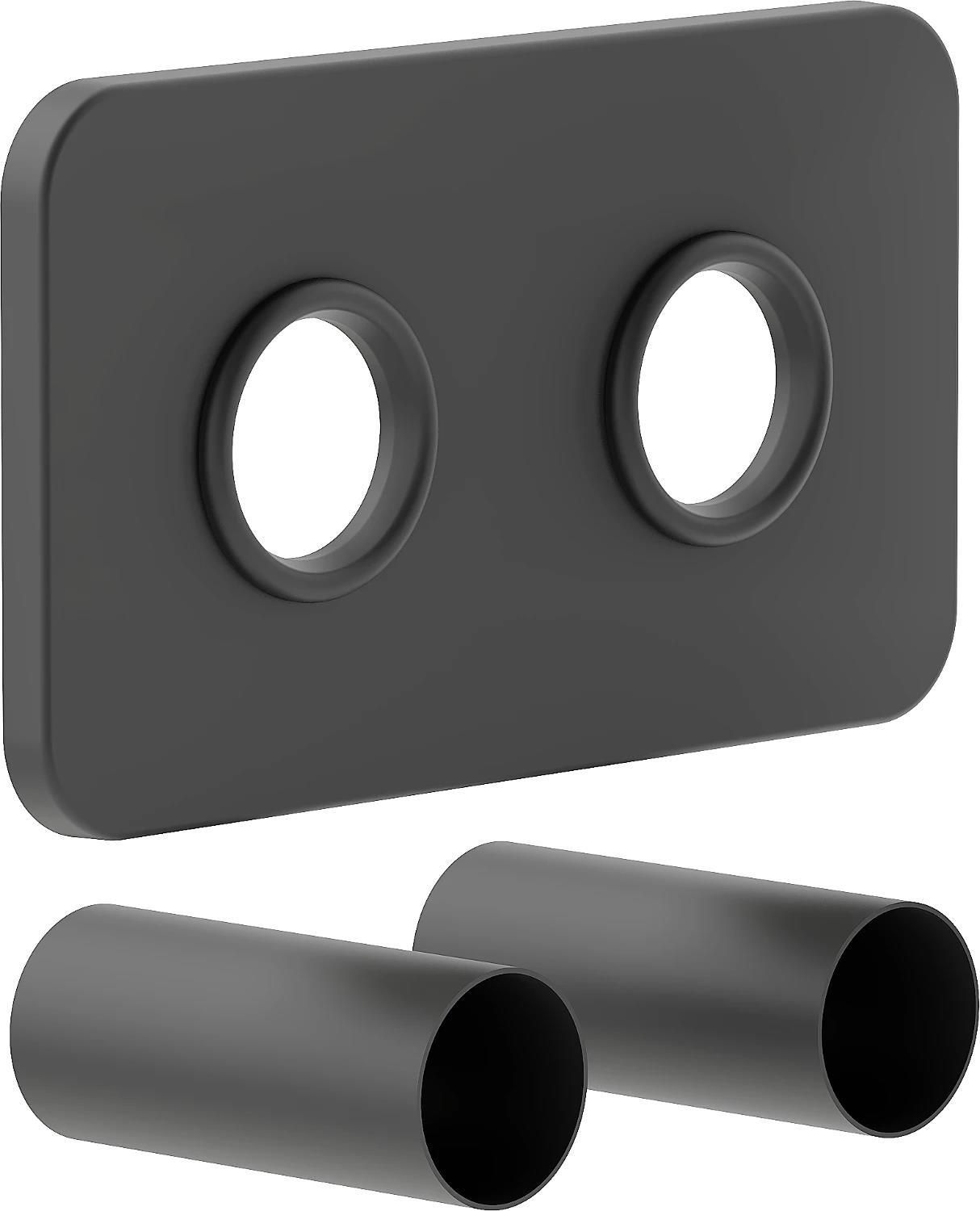 Mexen zestaw maskujący podwójny do grzejnika, antracyt Producent: Mexen Kod produktu: W910-000-66 Dane techniczne Materiał rozet: Stal nierdzewna Kolor: Antracyt Szerokość rozety: 115 x 65 mm Wysokość rozety: 7 mm Średnica wewnętrznego otworu: 21 mm Materiał tulejek: Mosiądz Długość tulejek: 50 mm Średnica wewnętrzna tulejek: 20 mm Rozstaw otworów na przyłącza grzejnikowe: 50 mm Zestaw maskujący składa się z podwójnej rozety i dwóch tulei przeznaczonych do montażu zestawów termostatycznych i zaworów grzejnikowych