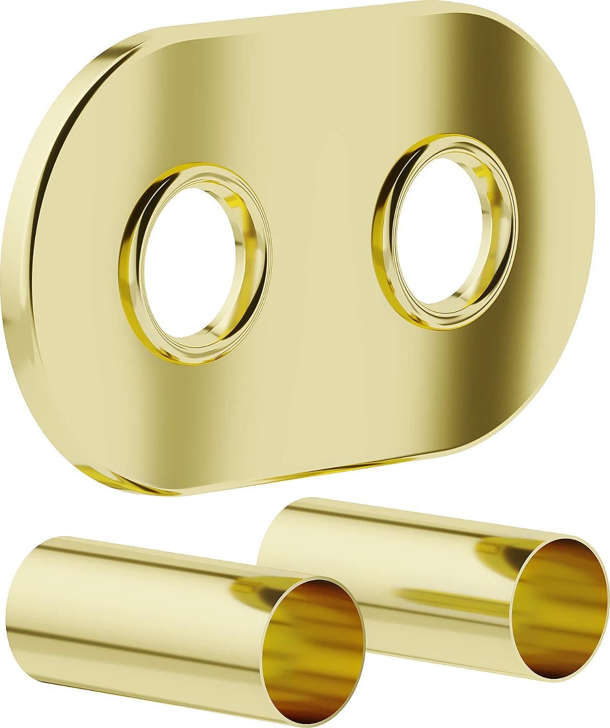 Mexen zestaw maskujący podwójny do grzejnika, złoty Producent: Mexen Kod produktu: W905-000-50 Dane techniczne Materiał rozet: Stal nierdzewna Kolor: Złoty Szerokość rozety: 115 x 65 mm Wysokość rozety: 7 mm Średnica wewnętrznego otworu: 21 mm Materiał tulejek: Mosiądz Długość tulejek: 50 mm Średnica wewnętrzna tulejek: 20 mm Rozstaw otworów na przyłącza grzejnikowe: 50 mm Zestaw maskujący składa się z podwójnej rozety i dwóch tulei przeznaczonych do montażu zestawów termostatycznych i zaworów grzejnikowych