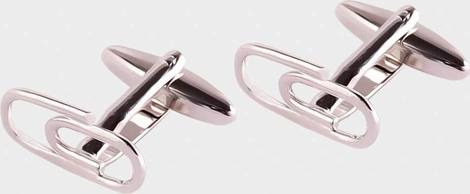 Eleganckie spinki do mankietów kształcie spinaczy. Spinki są w kolorze srebrnym, wykonane ze stali szlachetnej pokrytej rodem. Rod to pierwiastek, który nie wchodzi w reakcję z wodą ani powietrzem. Dzięki temu spinki zachowują swój świeży wygląd. Będą ciekawym i oryginalnym uzupełnieniem casualowej stylizacji. Są zapakowane w pudełeczko, mogą być również doskonałym prezentem.