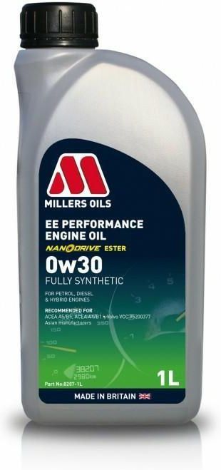 MILLERS EE PERFORMANCE 0W30 1L (Kod produktu: 8207-1) Syntetyczny, FULL SAPS, do silników benzynowych, Diesel oraz hybrydowych. Zastosowanie: Olej silnikowy klasy performance, wykorzystujący technologię NANODRIVE (Low Friction Technology) oraz estry syntetyczne, do silników wymagających oleju o …
