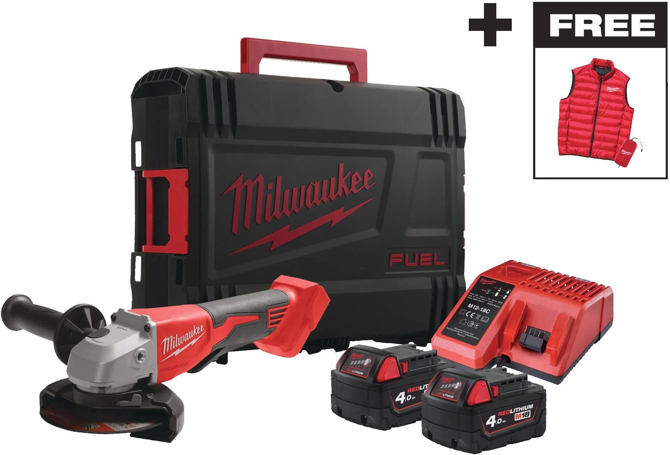 11 000 obr./min zoptymalizowane do zastosowań związanych z cięciem Mocny silnik bezszczotkowy zapewniający wydajność zbliżoną do szlifierki przewodowej o mocy 800 W Najbardziej kompaktowa i najlżejsza akumulatorowa szlifierka kątowa w ofercie Sprzęgło bezpieczeństwa chroni użytkownika przed odrzutem Zintegrowany system FIXTEC™ do beznarzędziowej wymiany kół Nieblokowany przełącznik łopatkowy bezpieczeństwa z funkcją blokady linii, aby zapobiec automatycznemu uruchomieniu Bezkluczowa osłona 125 mm z zaciskiem osłony tnącej do szybkiej regulacji osłony bez użycia klucza Zintegrowana osłona przeciwpyłowa zapobiegająca przedostawaniu się zanieczyszczeń, przedłużająca żywotność silnika Smukła konstrukcja uchwytu Bezszczotkowy silnik, akumulator REDLITHIUM™ i elektronika REDLINK™ zapewniają moc, czas pracy i trwałość. Elastyczny system akumulatorów: współpracuje ze wszystkimi akumulatorami MILWAUKEE® M18 . W zestawie - Walizka Wyposażenie standardowe - Szybko zdejmowana osłona zabezpieczająca, zacisk osłony tnącej, rękojeść boczna, kołnierz, nakrętka kołnierzowa, klucz Kod EAN - 4058546413965 Article Number - 4933492646 Display Web Lingual Local - Yes Display Web Non Lingual_ - Yes Kod EAN - 4058546413965 SSP Incl. VAT [€] - 2397.27 TEST_SSP Excl. VAT [€] - 1949.0 Funkcja blokady włącznika - Tak Hamulec - Nie Liczba akumulatorów - 2 Maks. głębokość cięcia (mm) - 33 Napięcie (V) - 18 Ochrona przed odrzutem - Tak Pełny zestaw - 2 x M18 B4 Akumulatory, M12-18 C Ładowarka, Walizka, bezrękawnik Pojemność akumulatora [Ah] - 4 Prędkość bez obciążenia (obr/min) - 11,000 Średnica tarczy (mm) - 125 Typ akumulatora - Li-ion Typ włącznika - Włącznik łopatkowy W zestawie - Walizka Waga z akumulatorem (EPTA) (kg) - 2.4 (M18 B4) Wyposażenie standardowe - Szybko zdejmowana osłona zabezpieczająca, zacisk osłony tnącej, rękojeść boczna, kołnierz, nakrętka kołnierzowa, klucz Article Number - 4933492646 Features - 11 000 obr./min zoptymalizowane do zastosowań związanych z cięciem Mocny silnik bezszczotkowy zapewniający wydajność zbliżoną do szlifierki przewodowej o mocy 800 W Najbardziej kompaktowa i najlżejsza akumulatorowa szlifierka kątowa w ofercie Sprzęgło bezpieczeństwa chroni użytkownika przed odrzutem Zintegrowany system FIXTEC™ do beznarzędziowej wymiany kół Nieblokowany przełącznik łopatkowy bezpieczeństwa z funkcją blokady linii, aby zapobiec automatycznemu uruchomieniu Bezkluczowa osłona 125 mm z zaciskiem osłony tnącej do szybkiej regulacji osłony bez użycia klucza Zintegrowana osłona przeciwpyłowa zapobiegająca przedostawaniu się zanieczyszczeń, przedłużająca żywotność silnika Smukła konstrukcja uchwytu Bezszczotkowy silnik, akumulator REDLITHIUM™ i elektronika REDLINK™ zapewniają moc, czas pracy i trwałość. Elastyczny system akumulatorów: współpracuje ze wszystkimi akumulatorami MILWAUKEE® M18