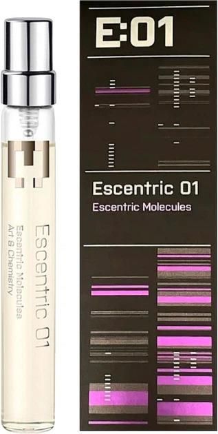 Premiera: 2006 rok Escentric 01 marki Escentric Molecules to drzewno - kwiatowo - piżmowe perfumy dla kobiet i mężczyzn. Nuta głowy: Limonka, Różowy pieprz, Aldehydy; Nuta serca: Irys, Hedione; Nuta bazy: Iso E Super, Kadzidło, Mastyks, Piżmo.