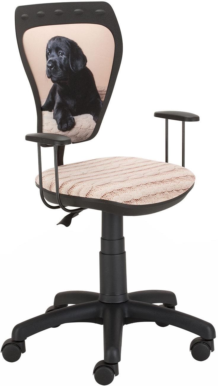 Krzesło dziecięce z limitowanej edycji MINISTYLE BLACK.Coś dla miłośników psów - MOTYW Labrador.Model Ministyle polskiego producenta Nowy Styl od lat cieszy się uznaniem i zaufaniem tysięcy Klientów.Regulowane oparcie i obszerne siedzisko, tapicerowane są miłą w dotyku tkaniną przypominającą welur. W prezentowanej limitowanej wersji na profilowanym oparciu widnieje uroczy LABRADOR - zobacz zdjęcia. Prezentowana wersja BLACK - stelaż, zarówno elementy metalowe jak i te wykonane z tworzywa sztucznego są w kolorze czarnym.W naszej ofercie dostępne jest również to krzesło w stelażu WHITE - białym oraz inne modele w jednolitej tkaninie MICRO, motywami bajkowymi, wersje z podłokietnikami oraz bez podłokietników. Wszystkie modele znajdą Państwo w zakładce - PRODUKTY Z RODZINY. W standardzie model ten posiada stałe podłokietniki. Krzesło posiada: płynną regulację wysokości siedziska, a także regulacje wysokości oparcia i odległości oparcia od siedziska. Funkcje krzesła zostały również pokazane w Filmie Instruktażowym (kliknij). Nylonowa podstawa jezdna z kółkami do powierzchni dywanowych jest lekka, a zarazembardzo stabilna i estetyczna. Kółka są samohamowne, obracające się pod obciążeniem. Istnieje możliwość zakupu, dodatkowych kółek miękkich, nierysujących powierzchni twardych - KÓŁKA MIĘKKIE, dodatkowa opcja w koszyku podczas składania zamówienia.Krzesła dziecięce przeznaczone są dla Użytkowników o wadze nieprzekraczającej 45 kg. Model objęty jest 3-letnią gwarancją w systemie door to door dla Państwa pełnego komfortu; ew. napraw dokonuje serwisant pod wskazanym przez Państwa adresem. Krzesełko dostarczymy do Państwa zawszeBEZPŁATNIE pod wskazany adres na terenie całej Polski, co dotyczy całej naszej oferty, Prezentowany model dostępny jest w naszym magazynie w wysyłce 24h. Co WAŻNE: zgodnie z prawem i naszym regulaminem (kliknij) mają Państwo pełne prawo do zwrotu nieużywanych krzeseł, jeśli nie spełnią one Państwa oczekiwań. Wymiary modelu: