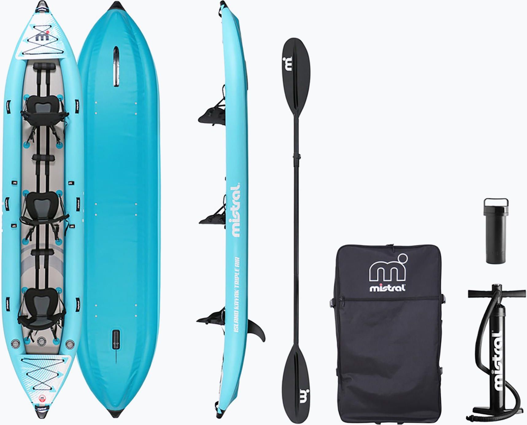 Kajak pompowany 3-osobowy Mistral Island Triple Air 470 cm to doskonały wybór dla miłośników wypadów na wodę w większym gronie. Zaprojektowany z myślą o wygodzie i trwałości, ten pneumatyczny kajak oferuje wyjątkowe parametry techniczne, które zadowolą nawet najbardziej wymagających użytkowników. Materiał i konstrukcja Kajak wykonany jest z wytrzymałego polichlorku winylu (PVC), co gwarantuje jego długą żywotność i odporność na uszkodzenia mechaniczne oraz warunki atmosferyczne. Dzięki zastosowanej technologii MSL drop stitch, kajak jest nie tylko lekki, ale również bardzo stabilny na wodzie, co zapewnia komfort i bezpieczeństwo podczas pływania. Wymiary kajaka wynoszą 470 x 91,5 x 33 cm, co sprawia, że jest on przestronny i wygodny dla trzech osób. System statecznika Kajak wyposażony jest w statecznik typu US Box, co znacząco poprawia jego właściwości nautyczne. System ten umożliwia lepsze prowadzenie kajaka, zwiększając jego stabilność i ułatwiając manewrowanie. Dzięki temu kajak Mistral Island Triple Air doskonale sprawdzi się podczas pływania na różnorodnych akwenach, od jezior po rzeki. Elementy zestawu W skład zestawu wchodzi nie tylko kajak, ale także trzy wiosła, co pozwala na pełne wykorzystanie jego potencjału przez wszystkich pasażerów. Dodatkowo w zestawie znajduje się torba transportowa, która ułatwia przenoszenie i przechowywanie kajaka. Trzy siedziska zapewniają komfort podczas długich wypraw, a pompka umożliwia szybkie i łatwe napompowanie kajaka. Zestaw naprawczy dołączony do kompletu pozwala na samodzielne usunięcie drobnych uszkodzeń. Obciążenie i marka Kajak pompowany Mistral Island Triple Air ma maksymalne obciążenie wynoszące 300 kg, co umożliwia bezpieczne pływanie trzech osób z bagażem. Marka Mistral, znana z produkcji wysokiej jakości sprzętu wodnego, gwarantuje niezawodność i wydajność tego modelu. Kajak ten to doskonała opcja dla osób ceniących sobie wygodę, trwałość i bezpieczeństwo podczas wodnych przygód.
