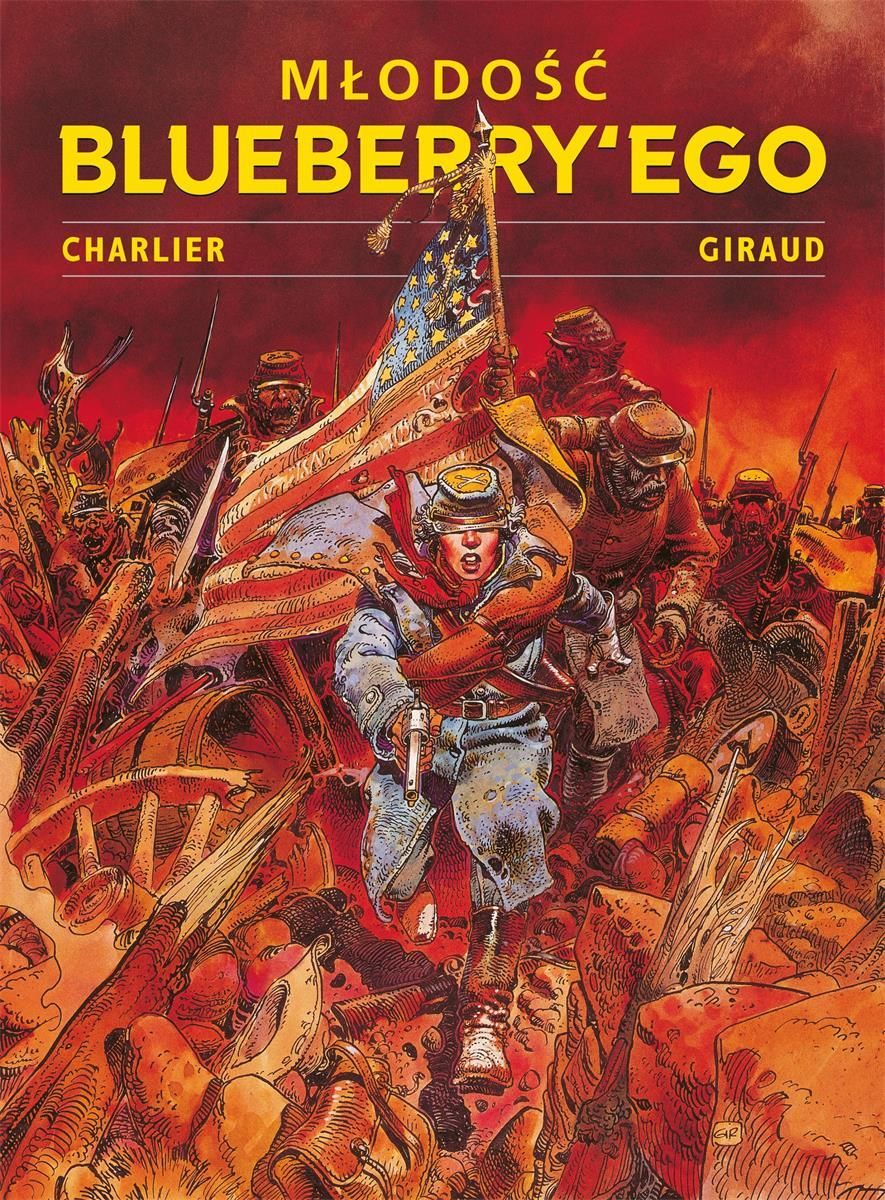 POPKULTUROWY KOCIOŁEK: Młodość Blueberry’ego to cykl komiksowy będący prequelem znanej francuskiej serii ukazującej powojenne przygody porucznika kawalerii USA Mike’a Blueberry’ego. Jak sam tytuł wskazuje, w serii autor odkrywa przed czytelnikami sekrety młodości bohatera i jego wojenne doświadczenia. Pierwszy album rodzimego wydania (ukazanego w ramach cyklu Plansze Europy) składa się z trzech historii wydanych pierwotnie w latach 1975-1979. Na sam początek autor przenosi nas do roku 1861, pokazując swojego bohatera jako aroganckiego syna właściciela ziemskiego z południa, który nieustannie się wywyższa, nie ma problemów z posiadaniem niewolników i ich piętnowaniem. Jest to dość ciekawy i odmienny obraz postaci dla kogoś, kto zna główną serię. Stanowi to również intrygujący początek do dalszego rozwoju historii. Na kolejnych stronach komiksu scenarzysta pokazuje mieszankę akcji, westernu i dramatu wojennego, najmocniej jednak skupiając się na wykreowanej przez siebie postaci. Ukazuje on serię wydarzeń kształtujących osobowość Mike’a Blueberry’ego. Jego ogromny temperament i „arystokratyczne” zadufanie w konfrontacji z niezbyt przyjemnymi wojennymi realiami, powodują dość poważny „zgrzyt”, rzutujący na jego późniejszą przyszłość. Fabularnie całość prezentuje dość ciekawy i równy poziom, zapewniając czytelnikowi należytą porcję „wojenno-westernowej” rozrywki. Pierwszy album niczym nie odbiega jakościowo od głównego cyklu, można nawet uznać, że stanowi on dobre jego uzupełnienie. Jedyne, do czego można się przyczepić to kilka zbytnio przesadzonych scen, w których odnosi się wrażenie, że autor na siłę próbuję zrobić ze swojego bohatera rasistę. Jeśli chodzi o oprawę graficzną, to prezentuje ona „poprawny” poziom. Całość rysunków jest czysta, schludna, dobrze oddająca dynamikę wydarzeń i mocno nasycona stylem „vintage” (co powiązane jest z czasem, w których powstał komiks). W przypadku innego artysty taką komiksową sztukę można byłoby uznać za bardzo dobrą. Od Jeana Girauda (lepiej znanego jako Mœbius) można jednak oczekiwać o wiele więcej. Artysta wielokrotnie udowadniał, że potrafi kreślić cudownie prezentujące się prace w westernowych/wojennych klimatach (chociażby Jim Cutlass). Tutaj wyraźnie brakuje jego przepychu, dbałości o najdrobniejsze detale i szczegółowego ukazywania piękna teł i natury.