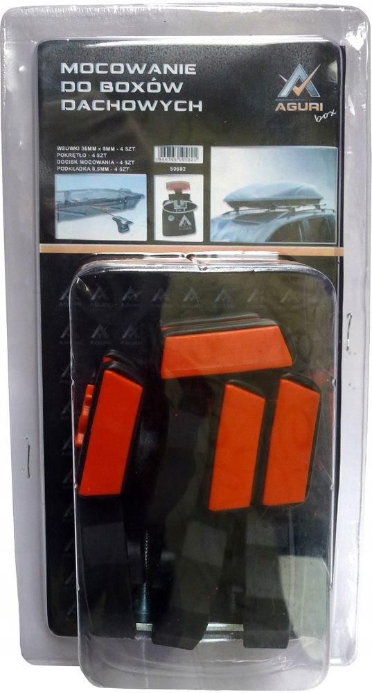 ZESTAW MOCOWANIA NA WSUWKI T DO BOXÓW AGURI 50582 CO WYRÓŻNIA NASZ PRODUKT 1✔️Wytrzymała i odporna konstrukcja zapewniająca stabilność i bezpieczeństwo. Kompletny zestaw elementów montażowych ułatwiający instalację i zwiększający uniwersalność zastosowania. Precyzyjna obróbka i ścisłe tolerancje produkcyjne gwarantujące idealne dopasowanie podzespołów. Długotrwała niezawodność i pewność bezpiecznej eksploatacji przez lata. NIEZAWODNE I TRWAŁE ROZWIĄZANIE Ten wysokiej jakości zestaw mocowań do boxów dachowych wykonany jest z wytrzymałych i odpornych na warunki atmosferyczne materiałów. Solidna konstrukcja i precyzyjne wykonanie gwarantują stabilne i bezpieczne zamocowanie nawet przy dużych obciążeniach i w ekstremalnych warunkach. UNIWERSALNOŚĆ I ŁATWOŚĆ MONTAŻU Zestaw wyposażony jest w komplet niezbędnych elementów montażowych, takich jak wsuwki, pokrętła, dociski i podkładki. Dzięki temu montaż przebiega sprawnie i bez konieczności zakupu dodatkowych akcesoriów. Uniwersalny system pasuje do większości popularnych modeli boxów dachowych. PRECYZJA I DOKŁADNOŚĆ WYKONANIA Każdy element zestawu został wykonany z najwyższą starannością, z zachowaniem szczegółowych wymiarów i tolerancji. Dzięki temu elementy dopasowują się do siebie idealnie, zapewniając solidne i sztywne połączenie. GWARANCJA NIEZAWODNOŚCI I BEZPIECZEŃSTWA Dzięki zastosowaniu wysokiej jakości materiałów i dbałości o szczegóły podczas procesu produkcyjnego, zestaw ten oferuje niezrównaną trwałość i bezpieczeństwo użytkowania przez długie lata. SPECYFIKACJA Stan: Nowy Producent: Aguri Waga produktu z opakowaniem jednostkowym: 0.5 kg Model: 50582 EAN (GTIN): 5900768505821