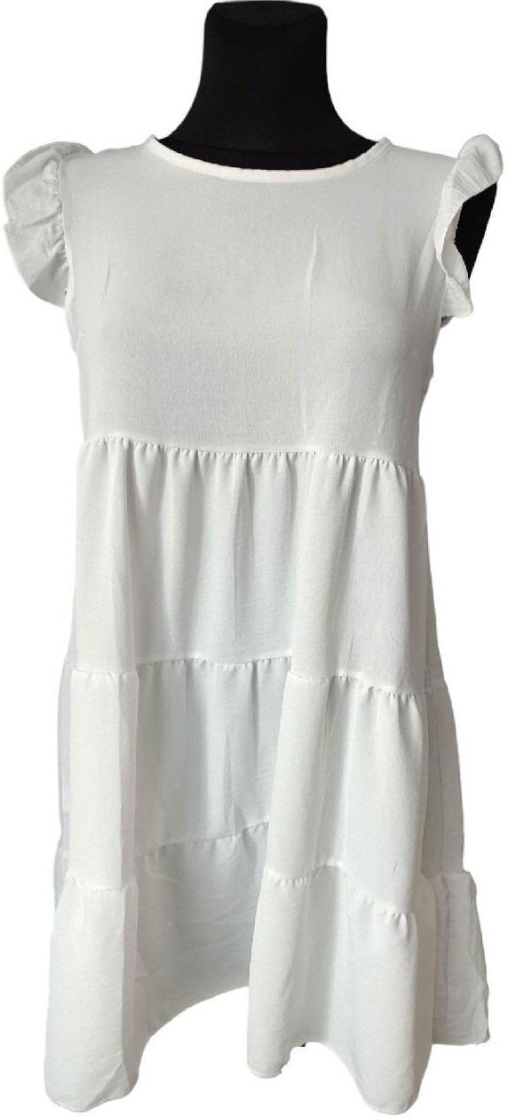 Modna biała letnia sukienka damska do kolon z falbanami na ramionach Warszawa