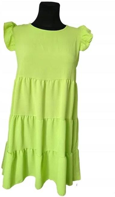 Modna zielona letnia sukienka damska do kolon z falbanami na ramionach Warszawa
