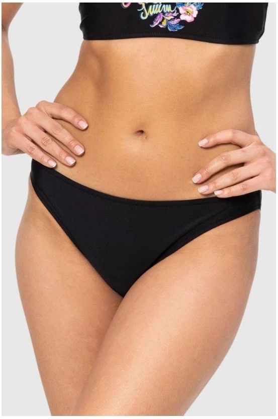 Dół od bikini MOSCHINO SWIM w kolorze czarnym. Z tyłu neonowy nadruk z logo w kwiatach w kolorach: różowym, żółtym, niebieskim i zielonym. Prać ręcznie, nie suszyć w suszarce bębnowej, nie stosować wybielaczy. ROZMIAR I DOPASOWANIE: Wymiary modelki: wzrost: 176 cm biust: 85 cm biustonosz: 65C …