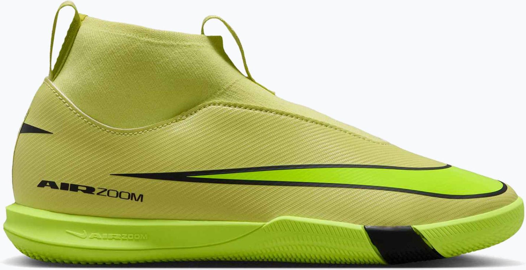 Buty piłkarskie dziecięce Nike Mercurial Superfly 10 Academy IC limelight/hyper crimson/volt to doskonały wybór dla młodych zawodników, którzy preferują grę w halowych warunkach. Buty te charakteryzują się nowoczesnym designem i funkcjonalnością, które zadowolą nawet najbardziej wymagających graczy. Cholewka wykonana z syntetycznego materiału zapewnia lekkość oraz optymalną kontrolę nad piłką, co jest niezbędne podczas szybkich akcji na boisku. Technologia NikeSkin Buty piłkarskie dziecięce Nike Mercurial Superfly 10 Academy IC limelight/hyper crimson/volt wyposażone są w zaawansowaną technologię NikeSkin. Ta innowacyjna powłoka poprawia przyczepność oraz kontrolę nad piłką. Dzięki temu młodzi zawodnicy mogą skupić się na precyzyjnych podaniach i celnych strzałach. Dodatkowo technologia ta wspiera naturalne ruchy stopy, co zwiększa komfort noszenia podczas intensywnych treningów i meczów. Amortyzacja i podeszwa W butach piłkarskich dziecięcych Nike Mercurial Superfly 10 Academy IC limelight/hyper crimson/volt zastosowano system amortyzacji Nike Air Zoom. To rozwiązanie zapewnia doskonałą ochronę stawów oraz redukcję wstrząsów podczas dynamicznych ruchów. Antypoślizgowa podeszwa z gumy oferuje niezrównaną przyczepność na halowej nawierzchni, co pozwala na pewność w każdym kroku i zwinne poruszanie się po boisku. Ekologiczne podejście Buty piłkarskie dziecięce Nike Mercurial Superfly 10 Academy IC limelight/hyper crimson/volt zostały wykonane z recyklingowanych materiałów, co wpisuje się w strategię zrównoważonego rozwoju marki Nike. Troska o środowisko to istotny aspekt, który może być dodatkową motywacją dla młodych sportowców, by dbać o naszą planetę. Dzięki temu wybierając te buty, nie tylko inwestujesz w jakość i komfort, ale również wspierasz działania proekologiczne. Buty piłkarskie dziecięce Nike Mercurial Superfly 10 Academy IC - cechy: Nowoczesny design dostosowany do gry w halowych warunkach; Cholewka wykonana z syntetycznego materiału zapewniająca lekkość i kontrolę nad piłką; Technologia NikeSkin poprawiająca przyczepność i kontrolę nad piłką; System amortyzacji Nike Air Zoom redukujący wstrząsy i chroniący stawy; Antypoślizgowa guma podeszwy zewnętrznej zapewniająca doskonałą przyczepność na halowej nawierzchni; But ze skarpetą zapewniający dodatkowe wsparcie i komfort; Niebrudząca podeszwa idealna do gry na hali; Wsuwane zapięcie umożliwiające szybką i łatwą regulację; Wykonane z recyklingowanych materiałów wspierających zrównoważony rozwój.