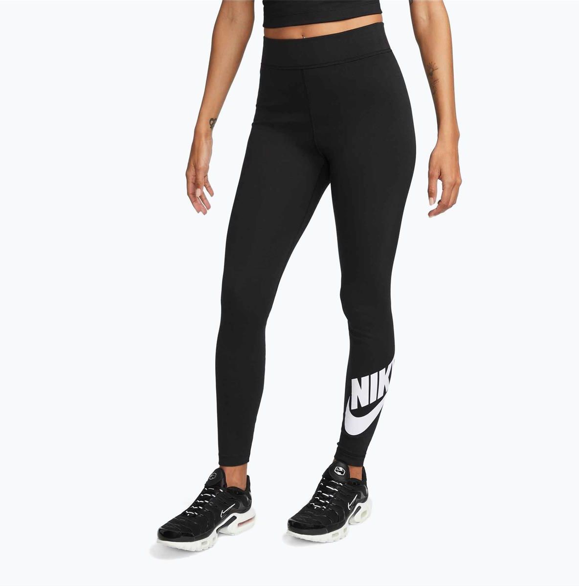Legginsy Nike Sportswear Classic W DV7791-010 Właściwości spodnie marki Nike doskonałe na treningi i na co dzień dla kobiet dopasowany krój wysoka talia długie nogawki logo producenta Kolor czarny