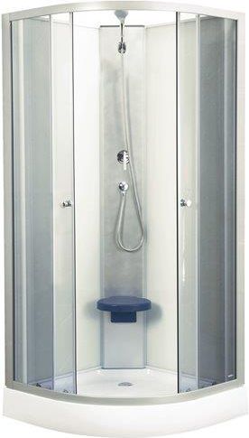 KABINA PRYSZNICOWA CZTEROŚCIENNA KERRA EVORA WHITE 90x90x205cm Wysokość zestawu: 205cm Dłuższy bok: 90cm Krótszy bok: 90cm Brodzik: Akrylowy, biały, z regulowanymi nóżkami Otwór na syfon: Ø 50 Wysokość brodzika: 15cm Głębokość brodzika: 5cm Szerokość wejścia: 50cm Szkło: Hartowane - z przodu przezroczyste (lekko przydymione), tylne jasne nieprzezroczyste Grubość szkła: 4mm Drzwi: Przesuwne, dwuskrzydłowe Mocowania drzwi: Rolki łożyskowe Rolki górne: Podwójne Rolki dolne: Pojedyncze, wypinane Profile: Aluminiowe, satyna Wyposażenie: Słuchawka prysznicowa, wąż prysznicowy, bateria, składane siedzisko W zestawie: Kabina, brodzik, syfon ATEST NARODOWEGO INSTYTUTU ZDROWIA PUBLICZNEGO PZH