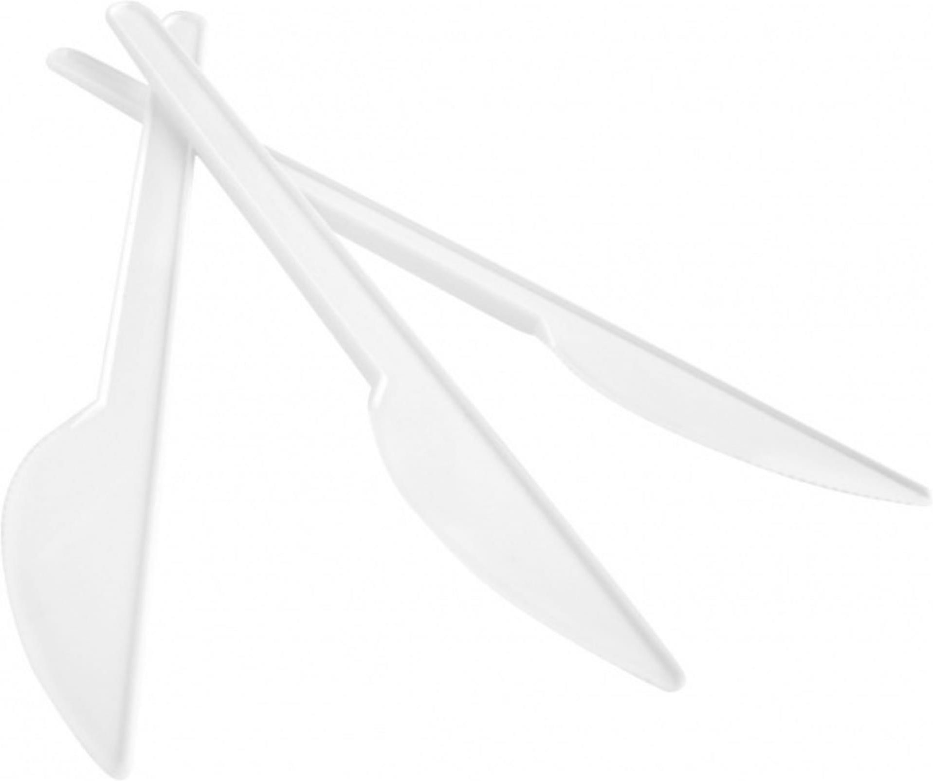 * plastikowy nóż * długość: 17cm * kolor: biały * 100 szt w opakowaniu * wielorazowego użytku * 1 op. w j.s.
