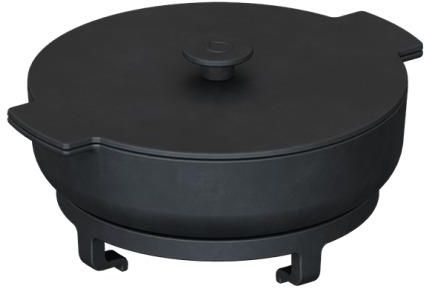 Kompaktowe akcesoria do grilla stołowego OFYR TABL'O. Zestaw zawiera: ruszt żeliwny garnek z pokrywką 4 drewniane szpatuły