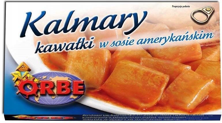 OrbeKalmary(kawałki) w sosie amerykańskimKartonik110 g68 gWyprodukowano w Hiszpanii