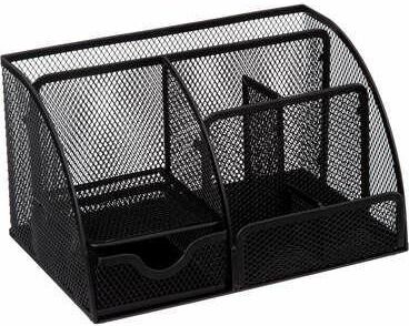 Organizer na biurko Havi Czarny - elegancja i funkcjonalność w jednym Metalowy organizer Havi to nie tylko praktyczne narzędzie do utrzymania porządku na biurku, ale również elegancki element wystroju. W kolorze czarnym, idealnie komponuje się z różnymi aranżacjami przestrzeni roboczej. Wielofunkcyjny design tego metalowego piórnika z serii Havi sprawia, że jest on niezastąpionym pomocnikiem na biurku. Posiada 6 przegród, które umożliwiają skategoryzowanie i uporządkowanie najróżniejszych przedmiotów biurowych, od długopisów po spinacze. Dodatkowo, mini szuflada pozwala przechowywać mniejsze przedmioty, takie jak pinezki czy kluczyki. Solidna konstrukcja metalowa zapewnia trwałość i stabilność, co sprawia, że organizer sprosta wymaganiom codziennego użytkowania. Czarny kolor nadaje mu nowoczesnego wyglądu, jednocześnie pasując do różnych stylów wnętrz. Upewnij się, że to dobry wybór! Metalowy organizer z kolekcji Havi. 6 przegród i 1 mini szuflada dla lepszej organizacji. Solidna konstrukcja zapewnia trwałość. Elegancki design, który komponuje się z różnymi aranżacjami biurowymi. Idealny do przechowywania długopisów, notesów, spinaczy i innych akcesoriów biurowych.