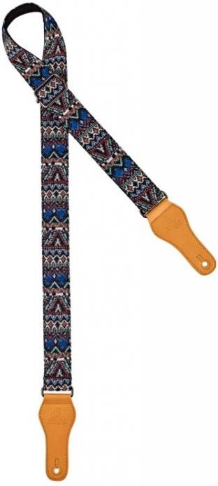 The WORLD SERIES – made from 100% cotton comes for guitar in 49 mm (1,93") width and up to 1580 mm (62,2") length and for ukulele in 37 mm (1,45") width and up to 1390 mm (54,33") length. The strong but flexible faux leather ends fit all types of strap pins and features an embossed logo. Available in eight different patterns. Pattern: desert night