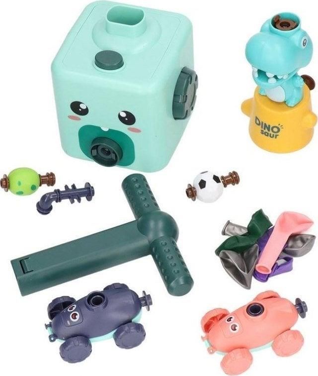 WYRZUTNIA SAMOCHODÓW - DINO Balonowa Wyrzutnia to rewelacyjny zestaw z autkami oraz innymi akcesoriami, które poruszają się za pomocą wypuszczanego powietrza. Do zabawy nie potrzebujesz baterii, wystarczy kilka ruchów by napompować balon. Zapewnij maluszkom rozrywkę na wiele godzin. Zestaw wykorzystuję prawa fizyki. Aby autko mogło się poruszać należy zamontować w nim balonik i następnie przyczepić do specjalnej wyrzutni. Kolejnym krokiem jest napompowanie balonika za pomocą dużej rączki. Po osiągnięciu odpowiedniej wielkości balonika należy nacisnąć na guzik "GO" na wyrzutni, a pojazd zacznie się poruszać. ZAWARTOŚĆ ZESTAWU: Wyrzutnia balonów Mała wyrzutnia rakiet dino 2 samochody na baloniki 1 wentylek do balonów z piłką 1 wentylek do balonów z jajkiem 1 zwykły wentylek do balonów 6 balonów (różne kolory) SPECYFIKACJA: Wymiary wyrzutni z rączką ok.: 12 x 12 x 22 cm Wymiary wyrzutni rakiet ok.: 7,5 x 8 x 13 cm Wymiary autka ok.: 8,5 x 5 x 4 cm Wymiary opakowania ok.: 15,5 x 14 x 17,5 cm Sugerowany wiek: 3 lata+ OSTRZEŻENIE Niedozwolone dla dzieci poniżej 8 roku życia. Dzieci w wieku poniżej 8 lat mogą udusić się lub udławić nienadmuchanymi lub pękniętymi balonami. Wyrzuć pęknięty balon natychmiast. Wymagany nadzór osoby dorosłej. Trzymać nienadmuchane balony z dala od dzieci. Nadmuchiwanie balonu powinno odbywać się za pomocą pompki pod nadzorem osoby dorosłej. Balonu nie należy nadmuchiwać ustami. Unikać kontaktu z twarzą i oczami. W razie pęknięcia jego kawałki mogąwyrządzić krzywdę. Balony wykonane z lateksu mogą wywołać reakcjęalergiczną.