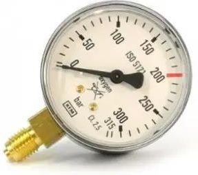 MANOMETR REDUKTORA PERUN OGÓLNY 315 BAR M12x1,5 Manometr zegarowy reduktorów spawalniczych. Zakres pomiarowy: 0-315 bar. Gwint: M12x1,5, średnica 62 mm. Manometr do reduktorów polskiego producenta PERUN. MANOMETRREDUKTORACIŚNIENIAPERUN OGÓLNY 315 BAR M12x1,5 Manometr reduktora 0-315 BAR M12x1,5 ogólny Perun - stosowany w reduktorze do odczytywania ciśnienia w butli gazowej. Manometr działa na zasadzie sprężystego odkształcenia sprężyny rurkowej Bourdona pod wpływem zmiany zadanego ciśnienia. Liniowe odkształcenie sprężyny jest zamieniane na ruch obrotowy wskazówki określającej wartość mierzonego ciśnienia na wyskalowanej tarczy. PARAMETRY zastosowanie: reduktory spawalnicze Perun zakres pomiarowy ciśnienia: 0-315 bar gwint: M12x1,5 średnica: 62 mm ISO: 5171 kod: M0943-831-016