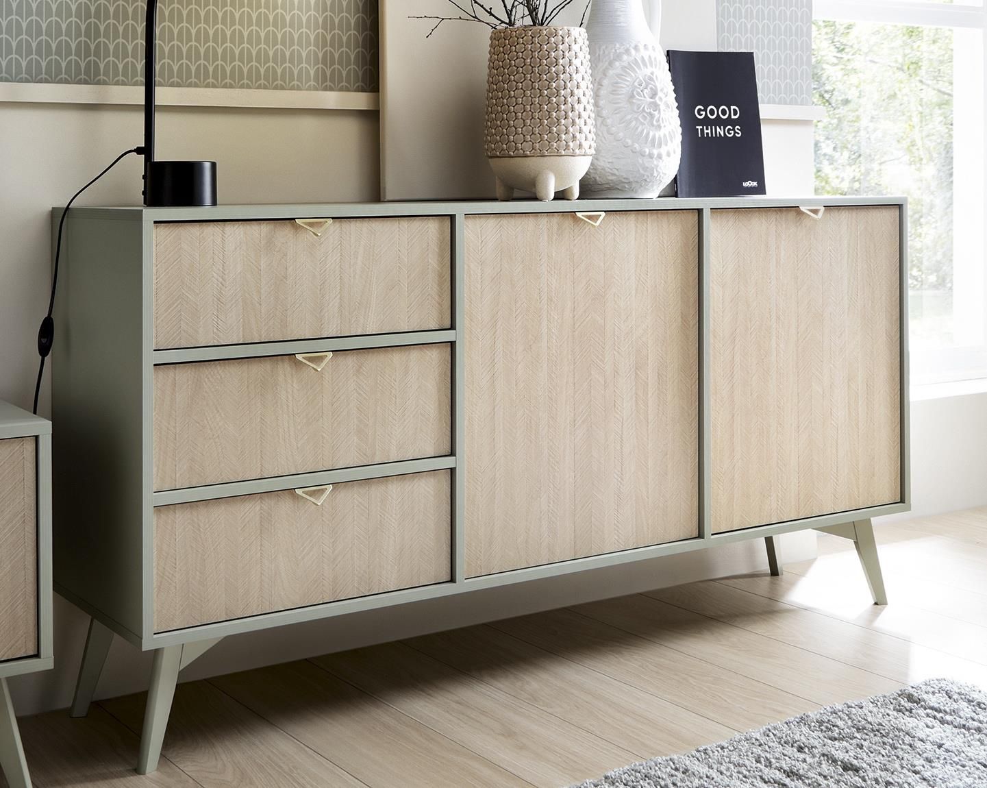 Komoda jednodrzwiowa z szufladami Forest marki Piaski, inspirowana stylem skandynawskim, łączy w sobie elegancję i funkcjonalność. Jej korpus wykonany jest z solidnego drewna o wyjątkowym odcieniu eukaliptusa i beżu, nadając pomieszczeniu przyjemną atmosferę naturalności. Front komody, wykonany z …