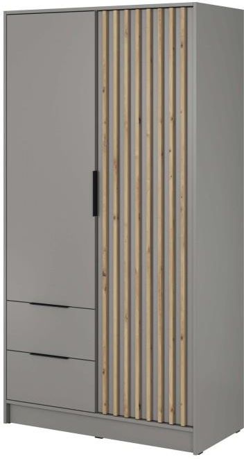 Model: NELLY 2D bez lustra Kolor: Szary / lamele artisan Wymiary: Szerokość 105 cm Wysokość 200 cm Głębokość 51 cm Wykonanie: Produkt do samodzielnego montażu Kształt prostokątny Rodzaj drzwi: uchynlne Dekoracyjne lamele poprowadzone przez całą wysokość drzwi Mocne zawiasy 4 solidne półki 2 pojemne …