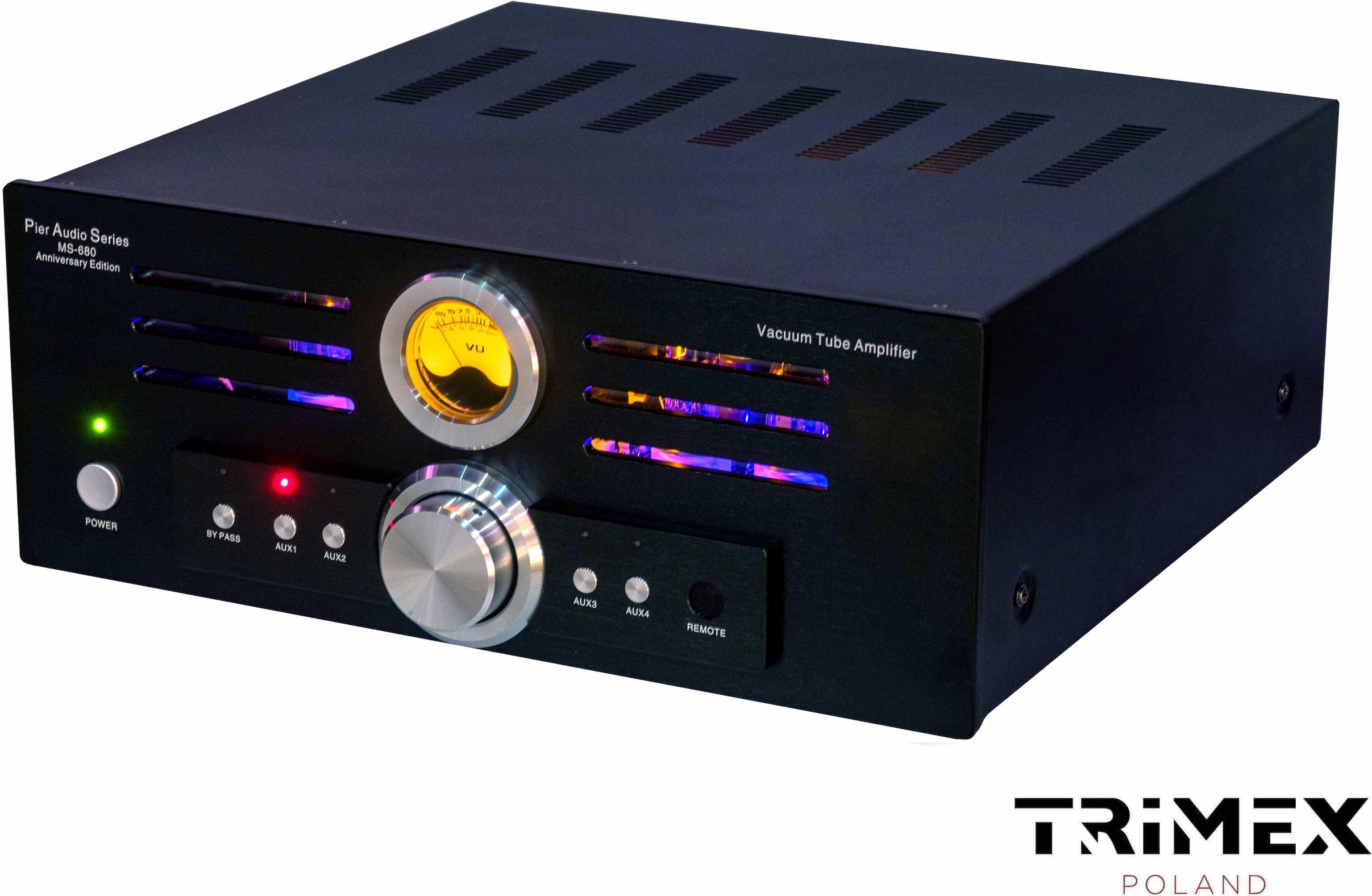 Pier Audio MS-680 Anniversary czarny Wzmacniacze audio to nieodłączny element każdego systemu audio, który pozwala na osiągnięcie najwyższej jakości dźwięku. Wybierając odpowiedni wzmacniacz, użytkownicy mogą liczyć na bogate i pełne brzmienie, które wprowadzi ich w świat muzyki jak nigdy dotąd. Jednym z wyjątkowych urządzeń na rynku jest Pier Audio MS-680 Anniversary czarny, który zadowoli nawet najbardziej wymagających audiofilów. Typ wzmacniacza i liczba kanałów Wzmacniacz Pier Audio MS-680 Anniversary należy do kategorii hybrydowych urządzeń audio, co oznacza, że łączy w sobie najlepsze cechy wzmacniaczy lampowych i tranzystorowych. Dzięki temu użytkownik może cieszyć się ciepłym i dynamicznym brzmieniem, które jest charakterystyczne dla lamp, a jednocześnie uzyskać szybki i precyzyjny dźwięk typowy dla tranzystorów. Wzmacniacz ten oferuje 2-kanałowy dźwięk, co czyni go idealnym wyborem zarówno do systemów stereo, jak i kina domowego. Moc wyjściowa i impedancja Pier Audio MS-680 Anniversary dysponuje imponującą mocą wyjściową wynoszącą 2 x 120W na kanał przy impedancji 8 ohm, co sprawia, że jest w stanie wysterować nawet najbardziej wymagające kolumny głośnikowe. Zakres impedancji wynosi 4 – 8 ohm, co zapewnia wszechstronność w doborze głośników i możliwość uzyskania najlepszego brzmienia niezależnie od konfiguracji systemu. Wejścia i wyjścia Kolejnym atutem wzmacniacza Pier Audio MS-680 Anniversary jest szeroki wachlarz dostępnych wejść i wyjść. Urządzenie posiada: 4 x RCA z regulacją głośności, 1 x RCA bypass bez regulacji głośności, 1 x USB B (opcjonalnie). Dzięki tym złączom użytkownik może podłączyć różnorodne źródła dźwięku, co zapewnia jeszcze większą elastyczność w korzystaniu ze wzmacniacza. Technologie dźwięku i obsługiwane formaty audio Pier Audio MS-680 Anniversary wyróżnia się zastosowaniem zaawansowanych technologii dźwięku. Wzmacniacz ten korzysta z czterech podwójnych lamp triodowych (2 x 12AT7 oraz 2 x 12AU7), które zapewniają ciepłe i naturalne brzmienie, pełne emocji i ekspresji. Dzięki temu użytkownik może cieszyć się muzyką o niespotykanej jakości, przenosząc się niejako w sam środek muzycznej przestrzeni. Funkcje dodatkowe i rodzaj zasilania Pier Audio MS-680 Anniversary oferuje szereg funkcji dodatkowych: wbudowany mini DAC z wejściem USB audio, wielofunkcyjny pilot zdalnego sterowania (przełączanie źródeł i regulacja głośności), wbudowany transformator mocy 750VA, duży podświetlony wskaźnik wychyłowy informujący o pracy urządzenia, poziome szczeliny ukazujące delikatnie żarzące się lampy. Te dodatkowe funkcje sprawiają, że korzystanie ze wzmacniacza jest jeszcze bardziej wygodne i przyjemne. Wymiary i waga Pier Audio MS-680 Anniversary charakteryzuje się solidną konstrukcją oraz eleganckim designem w kolorze czarnym. Wymiary wzmacniacza wynoszą 18 x 45 x 42 cm, co sprawia, że jest on kompaktowy i łatwy do umieszczenia w różnych miejscach odsłuchowych. Jego waga to 20 kg, co świadczy o wysokiej jakości użytych materiałów i solidnym wykonaniu.