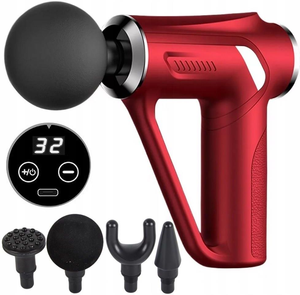 PISTOLET DO MASAŻU PLECÓW CIAŁA NÓG MASAŻER MOCNY MASSAGE GUN 4 KOŃCÓWKI Pistolet do masażu głównie wykorzystywany jest do łagodzenia sztywności i bólów mięśni, do poprawienia krążenia we krwi. Poprawia ogólnie tkanki miękkie przyspiesza i regeneruje stany zapalne. Doskonale sprawdza się dla osób, które podejmują aktywność fizyczną rekreacyjną jak i dla zawodowych sportowców. Najlepiej działa po ciężkim treningu lub po długiej pracy fizycznej. Masażer zaprojektowany został w ergonomicznej formie w kształcie pistoletu dzięki temu idealnie dopasowuje się do dłoni. Zawiera 4 różne końcówki, każda przeznaczona dla innej partii mięśni. RODZAJE KOŃCÓWEK: ✅ Pocisk: przeznaczony do punktów spustowych(zgrubień na tkance które wywołują ból) ✅ Okrągła: uniwersalna - przeznaczona do masażu wszystkich części ciała. ✅ Płaska: przeznaczona do pracy na małych i dużych grupach mięśniowych. ✅ Widełki: przeznaczone do pracy na mięśniach węższych i długich (np. prostownik grzbietu, czworoboczny grzbietu, brzuchaty łydki). SPECYFIKACJA TECHNICZNA: ✅ Kod produktu: 24581_CZE ✅ Wykonany z wysokiej jakości materiałów ✅ Przycisk ON/OFF ✅ Wskaźnik prędkości ✅ 32 stopnie intensywności masażu ✅ 4 różne końcówki ✅ Wymiary bez końcówek: 15cm x 14cm x 5cm ✅ Zasilanie: akumulatorowe ✅ Ładowanie za pomocą kabla USB-C ✅ Moc urządzenia: 30W ✅ Zakres obrotów: 1800 - 3200 /min ✅ Kolor: czerwony ✅ Produkt posiada certyfikat CE ZESTAW ZAWIERA: ☑️ Fabrycznie nowy masażer pistolet ☑️ 4 wymienne końcówki ☑️ Kabel USB ☑️ Oryginalne opakowanie