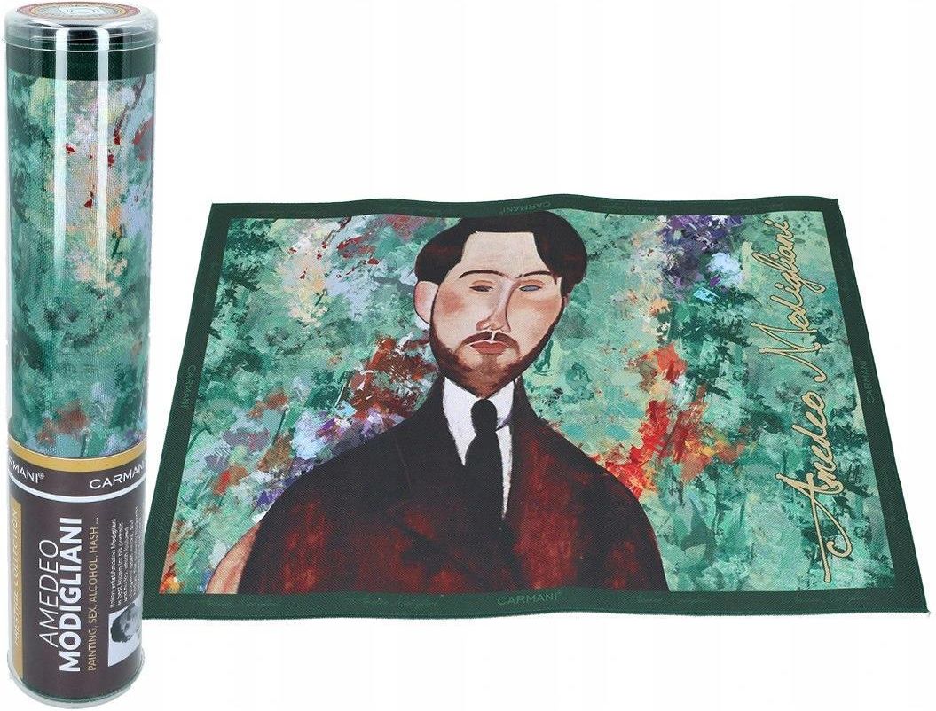 Podkładka na stół - A. Modigliani, Leopold Zborowski (CARMANI) Podkładka na stół - A. Modigliani, Leopold Zborowski (CARMANI) Podkładka na stół - wykonana z wysokiej jakości tworzywa sztucznego, które jest bardzo praktyczne i wygodne w użytkowaniu. Idealnie sprawdzi się pod talerz lub wazon do kuchni, jadalni lub salonu. Jednocześnie chroni i ozdabia stół. Mata jest w kształcie prostokąta i posiada wymiary: 29,5x40cm.Informacje o produkcie Rozmiar 29.5x40cm Rodzaj opakowania tuba 5907580075389 023-0603