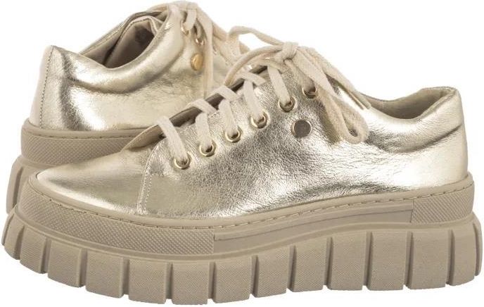 Kolor: złoty Materiał: skóra naturalna Damskie półbuty Nepeke Ina to połączenie stylu i komfortu, które zachwyci każdą miłośniczkę elegancji. Metalizowana cholewka wykonana ze skóry naturalnej przyciąga uwagę subtelnym blaskiem, dodając obuwiu nowoczesnego charakteru. Wnętrze również wykonane ze skóry naturalnej zapewnia wygodę i optymalne dopasowanie do stopy. Praktyczne wiązanie pozwala na idealne dopasowanie do stopy, zapewniając dodatkowe wsparcie i wygodę. Zaokrąglony nosek umożliwia swobodne rozłożenie palców. Lekka, platformowa podeszwa doda Ci parę centymetrów i zadba o odpowiednią przyczepność. Doskonały wybór na co dzień, kiedy chcesz połączyć funkcjonalność z wyrafinowanym stylem.