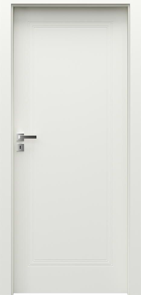 KONSTRUKCJA SKRZYDŁA Wypełnienie stanowi „plaster miodu” lub płyta wiórowa otworowa wzmocniona wewnętrznym ramiakiem ze sklejki. Całość obłożona jest płytą HDF. Skrzydła uzupełnione są aluminiowymi intarsjami w kolorze srebrnym lub złotym o szerokości 6 mm. W wykonaniu CPL HQ boki skrzydła pokryte są taśmą brzegową ABS. AKCESORIA W CENIE SKRZYDŁA Dwa zawiasy czopowe standard, dostępny także pakiet PRIME, patrz Dopłaty Trzy zawiasy w skrzydle o wymiarze „100“ oraz we wszystkich rozmiarach w okleinie Portadur Zamek: na klucz zwykły, z blokadą łazienkową lub dostosowany pod wkładkę patentową Pochwyt okrągły (do drzwi przesuwnych) OŚCIEŻNICE Rekomendowane ościeżnice przylgowe: Porta SYSTEM MINIMAX Rekomendowane ościeżnice bezprzylgowe: Porta SYSTEM ELEGANCE LEVEL UWAGI Aprobata Techniczna AT-15-3691/2012, ITB Warszawa. Tuleje wentylacyjne niedostępne dla modelu D.1. Przygotowanie do skrótu za dopłatą dotyczy skrzydeł z wypełnieniem „plaster miodu”. Wypełnienie płyta otworowa i płyta pełna zawiera przygotowanie do skrótu w standardzie. Rozmiar „110” dostępny tylko z wypełnieniem płyta wiórowa otworowa. Możliwość dowolnego zestawienia wymiarów skrzydeł w drzwiach podwójnych. Przy drzwiach podwójnych bezprzylgowych należy zamawiać skrzydło czynne i bierne. Skrzydło podwójne niedostępne z zamkiem magnetycznym.