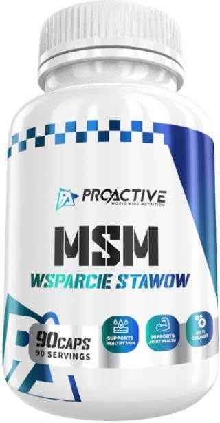 MSM siarka organiczna MOCNE STAWY KOŚCI regeneracja ProActive MSM 90 kaps ProActive MSM 90kaps To jeden z najlepszych sposobów na osiągnięcie wymarzonej formy fizycznej. Produkt sprawdza się przy treningach siłowych, jak i wytrzymałościowych. Bardzo często sięgają po niego również przedstawiciele dyscyplin szybkościowych. Warto docenić w tym przypadku uniwersalność i błyskawiczne działanie. MSM ma za zadanie wspierać odcinki układu kostno-stawowego. MSM - w jaki sposób działa na organizm? MSM działa na ludzki organizm na wielu płaszczyznach. Warto zwrócić uwagę na następujące zalety: szybsza regeneracja mięśni i tkanek, odbudowa chrząstki stawowej, eliminowanie dolegliwości bólowych i szybszy powrót do treningów po drobnych urazach, aktywna walka ze stanami zapalnymi, wyeliminowane skurcze mięśni. Sposób użycia Spożywać 1 kapsułkę raz dziennie Składnik aktywny 1 kapsułka MSM 690 mg UWAGI Suplementy diety nie mogą być stosowane jako substytut (zamiennik) zróżnicowanej diety i zdrowego trybu życia. Suplementy diety powinny być przechowywane w sposób niedostępny dla małych dzieci. Produkt przeznaczony dla dorosłych i zdrowych osób. Produkt nie powinien być stosowany przez kobiety w ciąży i matki karmiące.