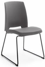Stelaż metalowy w trzech kolorach: chromowany lub malowany proszkowo w kolorze metalik lub czarny. Warianty stelaża: wersja konferencyjna na płozie - V. Wykonane ze sklejki drzewa liściastego, wyściełane integralną pianką poliuretanową (PU), wykonaną w technologii wtryskowej, gwarantującą wysoką odporność na zgniatanie oraz maksymalny komfort siedzenia. Oparcie całe tapicerowane z wewnętrznym plastikiem. Plastik wewnętrzny jest elementem elastycznym, dostosowującym się do ruchów siedzącego, wyklejony wylewaną w formie pianką. Podłokietnik stały, nakładka wykonana z pianki poliuretanowej (PU), kolor czarny.