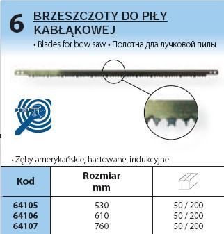 64105 Brzeszczot do piy kabkowej 530mm [64053], Proline Zby amerykaskie, hartowane indukcyjnie Do pi: 64053, 64061, 64076 Rozmiar: 530 mm