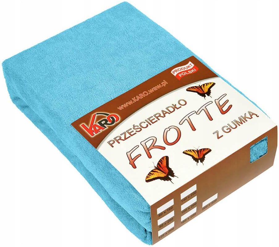 Prześcieradło frotte z gumką 140x200 turkusowe grube 200g/m2 KARO Prześcieradło frotte z gumką 140x200 grube 200g/m2 KARO jest miękkie i przyjemne w dotyku, a spanie na nim to czysta przyjemność. Szeroka gama kolorystyczna pozwoli na dopasowanie koloru prześcieradła do każdej pościeli. Z kolei wysoka jakość zastosowanych materiałów sprawi, że długo będziesz cieszyć się wyborem prześcieradła KARO. Prześcieradło zachowuje swój fason i utrzymuje intensywny kolor nawet po wielu praniach. Rozmiar: 140x200 cm Skład tkaniny: 82% bawełna, 18% poliester Materiał: frotte - lekko rozciągliwy i niewymagający prasowania, dzięki czemu jest wyjątkowo wygodny w użytkowaniu. Gramatura: 200 g/m2 Zakład prześcieradła wynosi ok. 15 cm i nie jest wliczany do rozmiaru. Prześcieradło przeznaczone jest na materace o wysokości do 15 cm, a zakład liczony jest na rogu prześcieradła. Dzięki bokom z narożnymi zaszewkami, profilującymi prześcieradło do kształtu materaca oraz gumce poprowadzonej w tuneliku produkt doskonale dopasowuje się i układa na materacach o różnej grubości. Przepis konserwacji: prać w temperaturze do 40°C, nie wybielać, nie prasować, nie czyścić chemicznie, suszyć w stanie rozwieszonym. Prześcieradła frotte z gumką KARO występują w wielu rozmiarach tj. m.in.:220x240, 70x140, 70x160, 90x200, 120x200, 140x200, 160x200, 180x200, 200x220 w ponad 40 kolorach. Produkt własny naszego sklepu, wyprodukowany w Polsce. Indeks katalogowy: 207263 Kod kreskowy: 5904941802172