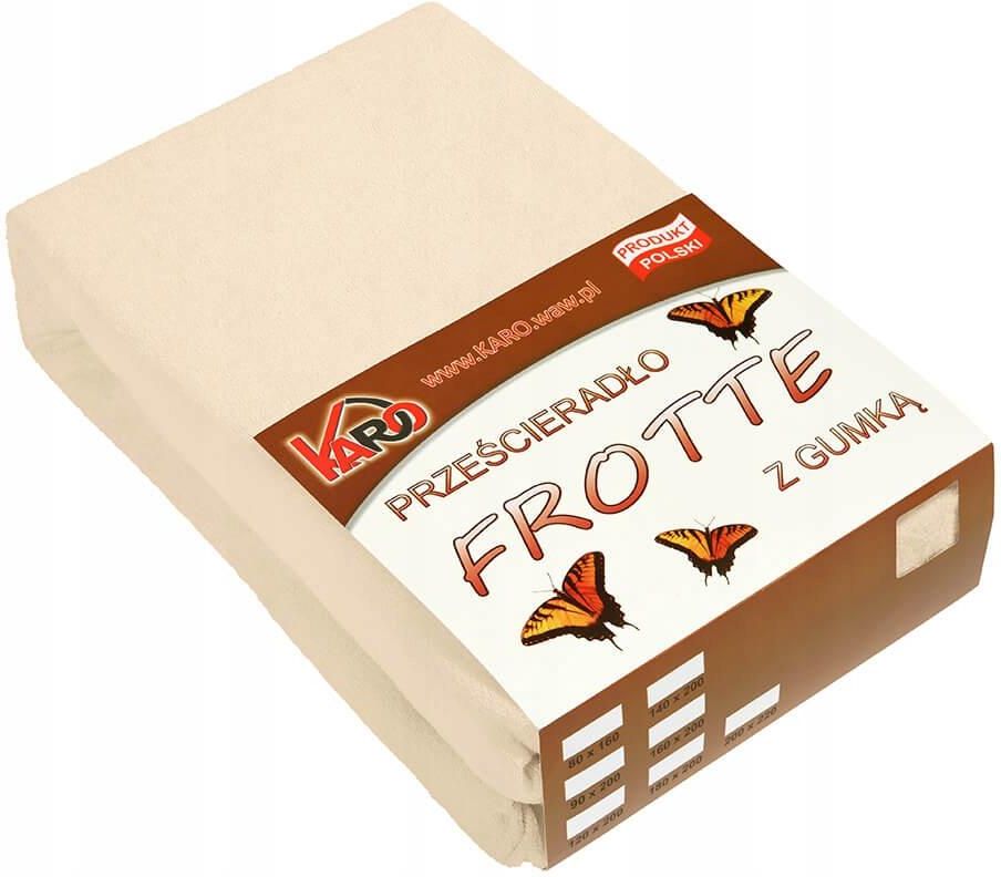 Prześcieradło frotte z gumką 80x160 beżowe jasne 008 grube 200g/m2 KARO jest miękkie i przyjemne w dotyku, a spanie na nim to czysta przyjemność. Szeroka gama kolorystyczna pozwoli na dopasowanie koloru prześcieradła do każdej pościeli. Z kolei wysoka jakość zastosowanych materiałów sprawi, że długo będziesz cieszyć się wyborem prześcieradła KARO. Prześcieradło zachowuje swój fason i utrzymuje intensywny kolor nawet po wielu praniach. Rozmiar: 80x160 cm. Skład tkaniny: 82% bawełna, 18% poliester. Materiał: frotte - lekko rozciągliwy i niewymagający prasowania, dzięki czemu jest wyjątkowo wygodny w użytkowaniu. Gramatura: 200 g/m2 - najgrubsze prześcieradło na polskim rynku. Zakład prześcieradła wynosi ok. 15 cm i nie jest wliczany do rozmiaru. Prześcieradło przeznaczone jest na materace o wysokości do 15 cm, a zakład liczony jest na rogu prześcieradła. Dzięki bokom z narożnymi zaszewkami, profilującymi prześcieradło do kształtu materaca oraz gumce poprowadzonej w tuneliku produkt doskonale dopasowuje się i układa na materacach o różnej grubości. Przepis konserwacji: prać w temperaturze do 40°C, nie wybielać, nie prasować, nie czyścić chemicznie, suszyć w stanie rozwieszonym. Prześcieradła frotte z gumką KARO występują w wielu rozmiarach tj. m.in.:60x120, 70x140, 80x160, 90x200, 120x200, 140x200, 160x200, 180x200, 200x220 w ponad 40 kolorach. Produkt własny naszego sklepu, wyprodukowany w Polsce.