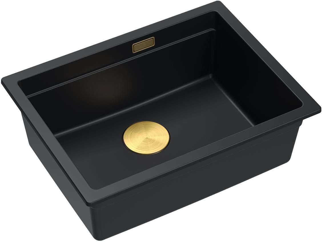 Quadron Kuchenny Zlewozmywak Jednokomorowy LOGAN 100 Granitowy Podwieszany Wymiary: 56 x 45 cm Kolor: Czarny / Pure Carbon + Złoto PVD Zestaw wyposażony jest w: zlewozmywak granitowy 56 x 45 cm syfon z przyściennym systemem SAVE SPACE, dzięki któremu zaoszczędzisz dużo miejsca w szafce pod zlewozmywakiem! odpływ ze stali szlachetnej SteelQ w kolorze złotym nakładka na odpływ w kolorze dopasowanym do odpływu Wyobraź sobie kuchnię… Twoją kuchnię… Przyjdź do nas, a my dołożymy wszelkich starań, aby Twoje wyobrażenie stało się rzeczywistością! Logan 100 - to idealna propozycja dla osób, które szukają trwałego i nowoczesnego rozwiązania do swojej kuchni. Dzięki wyjątkowo pojemnej komorze i wyjątkowej trwałości zlewozmywak jest stworzony do intensywnego użytkowania. Zlewozmywak wykonany z wysokiej jakości granitu, który zapewnia odporność na zarysowania, wysokie temperatury i codzienne zużycie. Idealny dla Twojej wymarzonej kuchni! W modelu LOGAN 100 zastosowane zostało obniżenie w wewnętrznej części, aby dodatkowo jeszcze powiększyć możliwości użytkowe, poprzez oparcie na nim deski, koszyka ociekowego, czy maty. Logan 100 zyskuje wyjątkowo nowoczesny i stylowy wygląd, który podnosi estetykę całej kuchni. To rozwiązanie docenią zarówno miłośnicy designu, jak i osoby ceniące funkcjonalność i higienę. To propozycja dla wymagających użytkowników, którzy nie chcą iść na kompromis między stylem a praktycznością. Specyfikacja Model: LOGAN 100 Kolor zlewozmywaka: czarny / pure carbon + złoto PVD Wymiary zlewozmywaka: 56 x 45 x 21,5 cm Wymiary komory: 53,5 x 37 cm Pojemność: 42 L Rozmiar podbudowy szafki: od 60 cm Sposób montażu: podwieszany Waga: 14 kg Odpływ: save space (przyścienny system oszczędzania miejsca w szafce pod zlewozmywakiem), korek manualny / zatyczkowy, syfon 3 1/2" z możliwością podłączenia zmywarki Ociekacz: brak Otwory: brak Gwarancja: 25 lat Quadron Polska to firma powołana do życia i kreowana przez pasjonatów – ludzi z ogromnym doświadczeniem rynkowym w branży produktów do strefy mokrej w kuchniach domowych. Jesteśmy dumni z naszego dotychczasowego dorobku zawodowego, a wszystkie najlepsze doświadczenia, również produktowe, udoskonalamy i rozwijamy w naszej codziennej pracy dla marki Quadron. Codzienne dążenie do spełniania oczekiwań klientów jest nie tylko naszą pracą, ale energią, która napędza każdy kolejny dzień. Mamy nadzieję, że marka Quadron zagości też w Twoim domu! Zapraszamy do zapoznania się z innymi produktami marki Quadron na naszych pozostałych aukcjach!