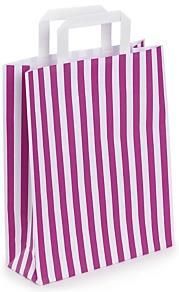 Ciekawy wygląd: barwne kolory pasków przykuwające uwagę. Odporna na zerwanie. Pojemna: wyposażona w zakładki boczne, pozwalające umieścić wewnątrz kilka przedmiotów. Wykonana z gładkiego papieru kraft. Posiada płaskie uchwyty. Dostępna w 4 kolorach. Jednostka sprzedaży: paczka. Ilość w paczce: 50 szt.