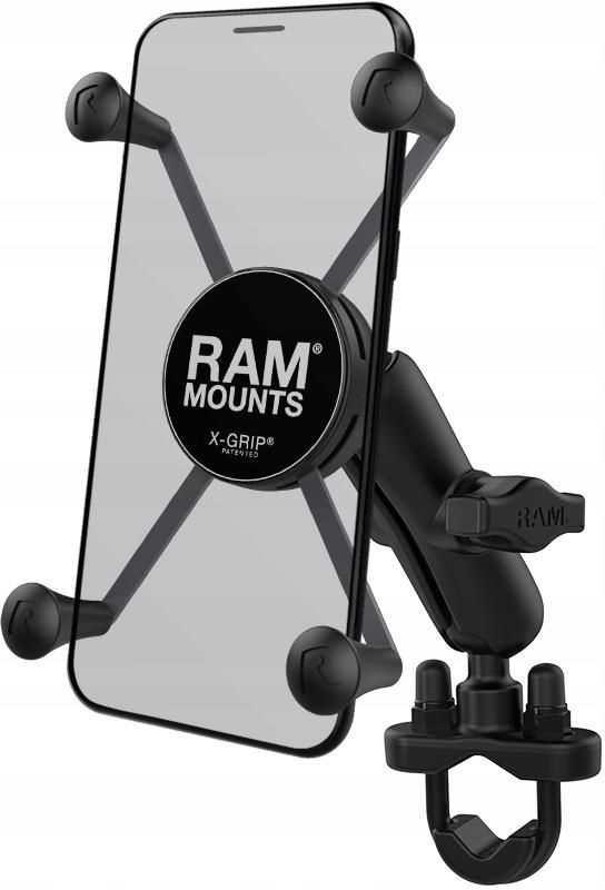 RAM Mount Uchwyt Motocyklowy Na Telefon Smartfon RAM-B-149Z-UN10U to zestaw montażowy RAM Mount w którym znajduję się: RAM-HOL-UN10BU Uniwersalny uchwyt X-Grip™ przeznaczony do dużych smartfonów, małych tabletów lub innych urządzeń elektronicznych. Produkt daje wiele możliwości montażu z komponentami RAM Mount. Uchwyt został zaprojektowany tak, aby zapewnić dostęp do wszystkich portów urządzenia oraz aby dzięki sprawnemu mechanizmowi sprężynowemu pewnie trzymał Twoje urządzenie. RAM-B-201U-A ramię o długości 2.38 cala (6.05cm) obustronnie współpracujące z głowicami o średnicy 1-cala. RAM-B-231ZU uchwyt przeznaczony do mocowania na ramę kierownicy o wymiarach od 1,27 cm do 3,18 cm, połączony z 1-calową głowicą. W jego skład wchodzi metalowy bolec odporny na korozję ułożony na kształt litery "U" oraz zaślepki przeznaczone do umieszczenia na obu jego końcach. Do uchwytu dołączone są także specjalne "szelki", które dodatkowo trzymają Twój smartphone - RAM-HOL-UN10TU. Zostały wykonane z wytrzymałego elastycznego materiału i wspomagają pracę uchwytu X-Grip w najbardziej ekstremalnych warunkach uniemożliwiając przesuwanie się urządzenia. Wymiary uchwytu: minimalna szerokość = 4.45 cm (1.75 cala) (Aby urządzenie o szerokości 4.45 cm pasowało do uchwytu musi mieć minimum 13.97 cm długości) Maksymalna szerokość = 11.43 cm (4.5 cala) (Aby urządzenie o szerokości 11.43 cm pasowało do uchwytu musi mieć minimum 8.26 cm długości) Cechy: Idealne dopasowanie do urządzenia dzięki mechanizmowi sprężynowemu Stabilne trzymanie urządzenia dzięki gumowym nakładkom na końcach uchwytu Wiele możliwości montażu z komponentami firmy RAM Mount Wysoka jakość wykonania Szeroki zakres regulacji Dożywotnia gwarancja