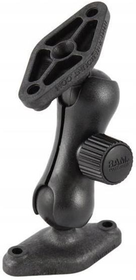 RAM Mount Uchwyt Ramię z Dwiema Głowicami 1" RAM Mount Uchwyt Ramię z Dwiema Głowicami 1" RAP-B-102-2U składa się z krótkiego kompozytowego ramienia z podwójnym gniazdem i dwóch diamentowych podstaw. Diamentowe mają rozmiar 2,43" x 1,31" i zawierają dwa otwory 1,912" od środka do środka, umieszczone na obu końcach diamentowej podstawy. Wzór otworów znajdujący się na diamentowych podstawach umożliwia podłączenie wielu podstawek RAM, w tym uchwyty ze standardowym w branży układem otworów AMPS. W uchwycie zaprojektowano opatentowany gumowy system kulek i gniazd o średnicy 1 cala z punktami regulacji na obu końcach ramienia.