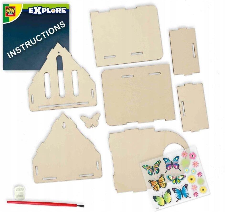 Hotel motylkowy - zabawa kreatywna Czas na więcej motyli w ogrodzie lub na balkonie! Dzieci mogą samodzielnie zbudować hotel motylkowy Explore i ozdobić go naklejkami z motylami. Te zabawki STEM są nie tylko ciekawe, ale także bardzo edukacyjne. Zbuduj krok po kroku drewniany hotel dla motyli, a następnie wypełnij go naturalnymi materiałami, które znalazłeś na zewnątrz. W ten sposób stworzysz osłonięte miejsce dla motyli! Do miski wlej wodę z cukrem i poczekaj, aż najpiękniejsze motyle przybędą do własnoręcznie zbudowanego hotelu dla motyli! Drewniany hotel dla motyli do samodzielnego złożenia Pobudza zainteresowanie przyrodą Zawiera wesołe naklejki w kształcie motyli Zestaw do zabawy STEM Zestaw zawiera Klej Drewniane części hotelu dla motyli Pojemnik na syrop Pędzelek Arkusz naklejek z motylkami Instrukcje