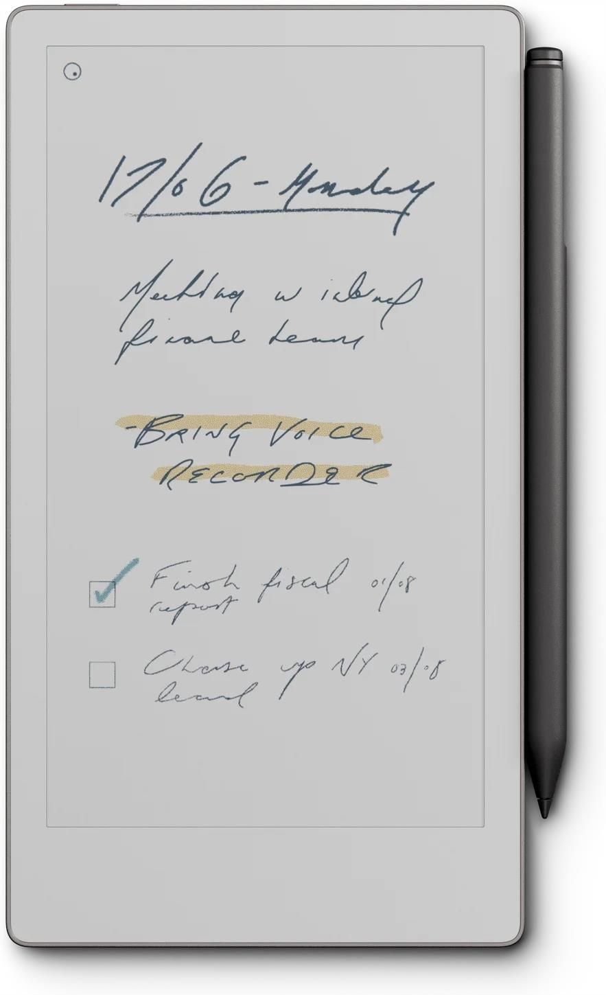 Czytnik reMarkable Paper Pro Move 64GB 7,3" Notatnik, Czytnik e-book, E-Ink, model RM89A + Oryginalny rysik reMarkable Marker Plus z gumką wraz z 5 końcówkami Odkryj reMarkable Paper Pro Move – lekki, kolorowy tablet E-Ink, który łączy w sobie prostotę papieru z możliwościami cyfrowego świata. Idealny do pracy w podróży, na spotkaniach czy podczas nauki. Bez rozpraszających aplikacji i powiadomień – tylko Ty i Twoje notatki. Najważniejsze zalety 7,3” ekran Canvas Color – realistyczne wrażenie pisania po papierze, teraz również w kolorze. Marker Plus – precyzyjny rysik z magnetycznym mocowaniem, dostępny w zestawie. Długi czas pracy – nawet do 2 tygodni na jednym ładowaniu, szybkie ładowanie USB-C (0-90% w 45 minut). 64GB pamięci – zmieści tysiące notatek, dokumentów i plików. Podświetlenie – wygodne pisanie i czytanie również wieczorem. Synchronizacja w chmurze – notatki zawsze dostępne na komputerze i telefonie. reMarkable Paper Pro Move + Marker Plus – cyfrowy notatnik nowej generacji reMarkable Paper Pro Move to ultralekki tablet do notatek, który łączy naturalne wrażenie pisania na papierze z nowoczesnymi narzędziami cyfrowymi. To idealne rozwiązanie dla osób, które chcą pracować efektywnie, zachować pełną koncentrację i mieć swoje pomysły zawsze pod ręką – w biurze, w podróży i w domu. Pisanie jak na papierze – technologia, która nie przeszkadza Powierzchnia ekranu reMarkable imituje fakturę papieru, dzięki czemu pisanie Markerem jest niezwykle naturalne i przyjemne. Każdy ruch dłoni wygląda, brzmi i czuje się jak prawdziwy atrament na kartce. To idealny wybór dla tych, którzy nie lubią pisać na błyszczących ekranach smartfonów czy tabletów. Twoje notatki zawsze zorganizowane reMarkable Paper Pro Move pozwala tworzyć foldery, dodawać tagi i wyszukiwać tekst w odręcznych notatkach. Dzięki chmurze i aplikacjom mobilnym oraz desktopowym Twoje pomysły są zawsze zsynchronizowane i bezpieczne. Z subskrypcją Connect zyskujesz nieograniczoną przestrzeń w chmurze, możliwość edycji na laptopie i telefonie, a nawet szybkie udostępnianie notatek np. w Slacku. Wydajność i mobilność Ten cyfrowy notatnik waży mniej niż książka w miękkiej oprawie, a jednocześnie mieści wszystkie Twoje dokumenty. Bateria wystarcza nawet na dwa tygodnie pracy, a szybkie ładowanie pozwala uzupełnić energię od 0 do 90% w mniej niż godzinę. Marker Plus – naturalne pisanie i szkicowanie Dołączony do zestawu Marker Plus zapewnia realistyczne tarcie i płynność pisania. Dzięki wbudowanej gumce możesz poprawiać swoje notatki jak na prawdziwym papierze. Magnetyczne mocowanie sprawia, że rysik zawsze masz pod ręką. Zawsze profesjonalny wygląd Aluminiowa obudowa i matowe szkło sprawiają, że Paper Pro Move wygląda elegancko w każdej sytuacji. To sprzęt, który nie tylko ułatwia pracę, ale też świetnie się prezentuje – w sali konferencyjnej, na spotkaniu z klientem czy w podróży. Pracuj i czytaj bez ograniczeń Wbudowane podświetlenie pozwala pisać i czytać o każdej porze dnia i nocy. Ekran nie emituje szkodliwego niebieskiego światła, dzięki czemu oczy mniej się męczą. Możesz pracować nawet w pełnym słońcu – bez odblasków i rozproszeń. Zawartość zestawu reMarkable Paper Pro Move RM89A oryginalny ryski Marker Plus z gumką, 6 zapasowych końcówek do Markera Kabel USB-C do ładowania Dlaczego warto wybrać reMarkable Paper Pro Move? Najbardziej naturalne pisanie wśród cyfrowych notatników ReMarkable Paper Pro Move to najbardziej przenośny model z serii reMarkable – lekki, szybki i zawsze gotowy do pracy. Zastąpi stosy zeszytów, notatników i karteczek – a Twoje notatki zawsze będą w jednym miejscu. Lekki i mobilny – idealny do pracy w podróży Długi czas pracy na baterii Zawsze zorganizowane notatki i dostęp z każdego urządzenia Profesjonalny wygląd i ekologiczna konstrukcja Specyfikacja techniczna Ekran: 7,3” Canvas Color, 1696×954 px (264 PPI), 1696 x 954 px Podświetlenie: Tak, konfigurowalne (bez niebieskiego światła) Pamięć: 64 GB Łączność: Wi-Fi, USB-C Porty, złącza i sloty: USB 2.0 typu C ("high speed") Wymiary: 195,6 x 107,8 x 6,5 mm, Waga: ok. 230 g Czas pracy: do 2 tygodni System: reMarkable OS z obsługą konwersji odręcznego pisma na tekst
