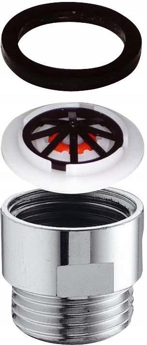 Reduktor przepływu wody do prysznica 1/2" Reduktor przepływu wody (perlator) pozwala zaoszczędzić nawet do 40 % wody zwiększając komfort korzystania z baterii. Wyrównuje ciśnienie wody. Do zamontowania między baterią, a wężem prysznicowym lub między wężem, a słuchawką. Uniwersalny gwint …