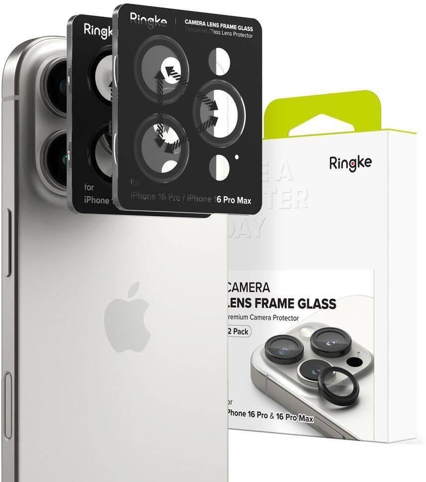 Ringke Camera Lens Frame Glass Do Apple iPhone 16 Pro / 16 Pro Max Pojedyncze osłonki na każdy z obiektywów Wysoka przejrzystość Grubość szkła: 1,8 mm Wysokość szkła z nakładką: 1,96 mm Pełna funkcjonalność kamer Łatwy: montaż i demontaż Kompatybilne z obudowami z szerokimi wycięciami na aparat W …